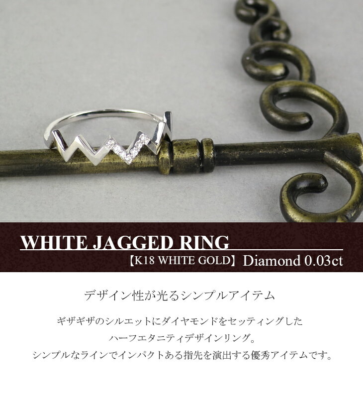 K18 ホワイトゴールド 天然ダイヤモンド ジャギー リング 5〜13号 18金 18k k18ゴールド レディース 女性 指輪 天然 ダイヤ シンプル ギザギザ ジグザグ 山 心音 ハート ビート プレゼント ギフト 人気 おすすめ