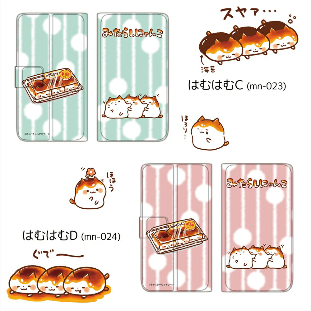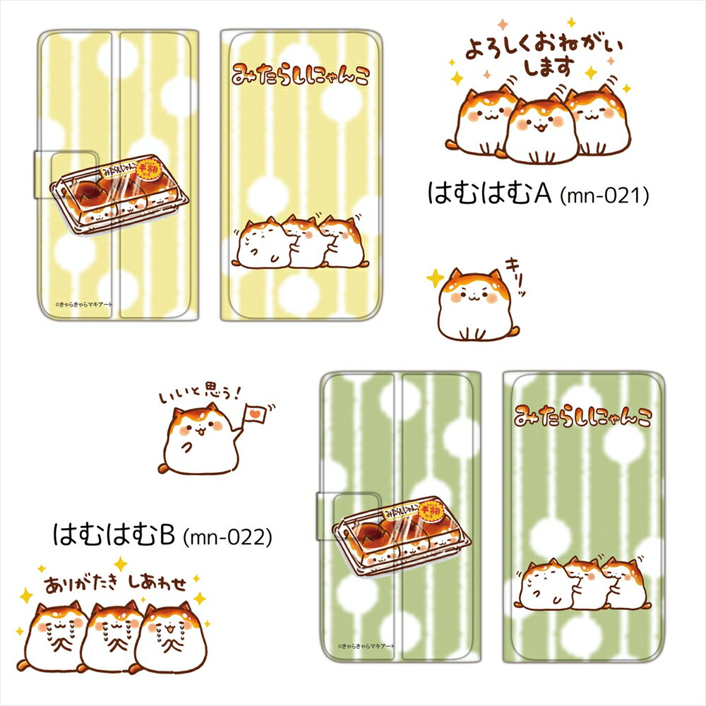 みたらしにゃんこ 薄型プリント手帳 / はむはむ スマホケース 手帳型 全機種対応 OPPO Reno ZTE Moto G8 シンプルスマホ HTC スマホカバー 携帯 ケース カバー