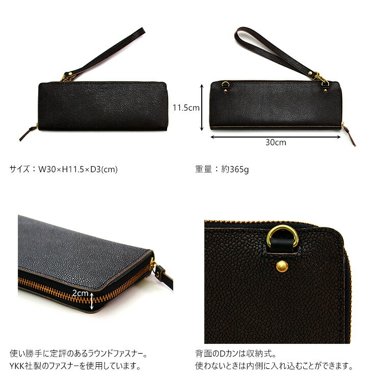 Detail 商品説明 ■素材:牛革 ■サイズ:W30× H11.5× D3(cm) ■重量:約365g まるでクラッチバッグのような、圧倒的な存在感の特大長財布です。
